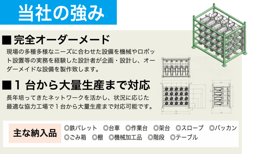 業務内容に応じた工場設備の企画・設計・製造までを行います
